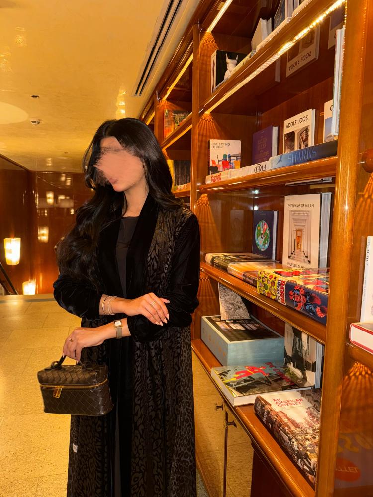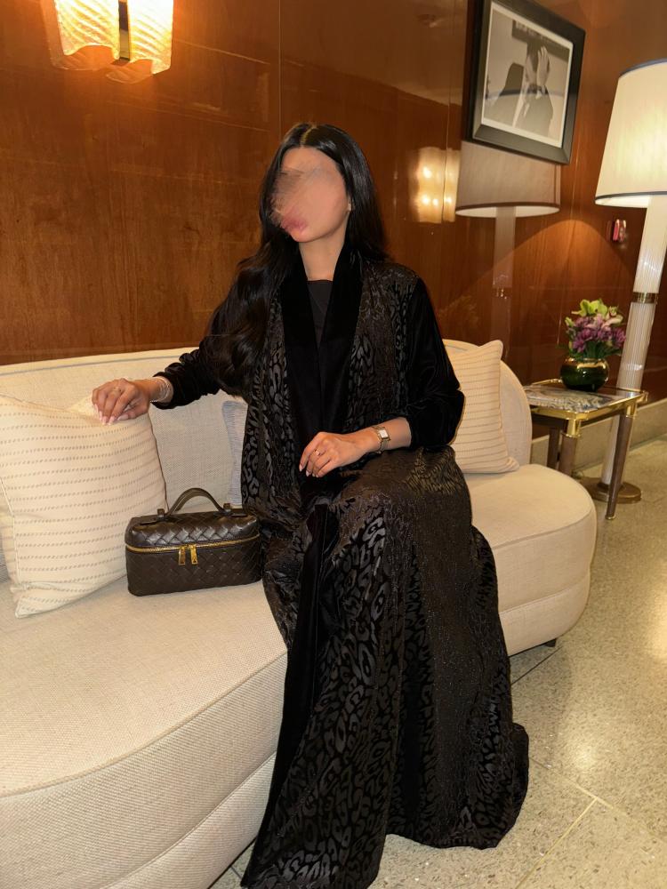 التفاصيـل: عباية بقماش مخمل اسود بنقشة،
