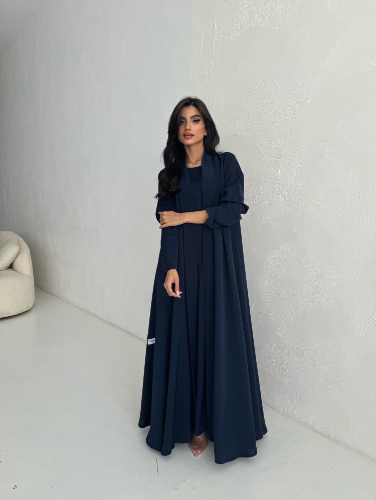 التفاصيل: عبايه بقماش كريب صيفي بارد ، قصة دبل كلوش، اللون كحلي ، وفستان داخلي بنفس القماش يمكن اضافته عند الرغبه.