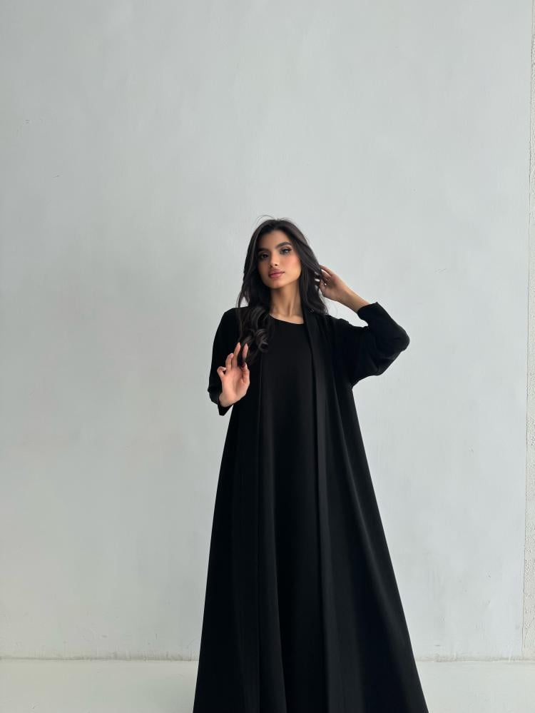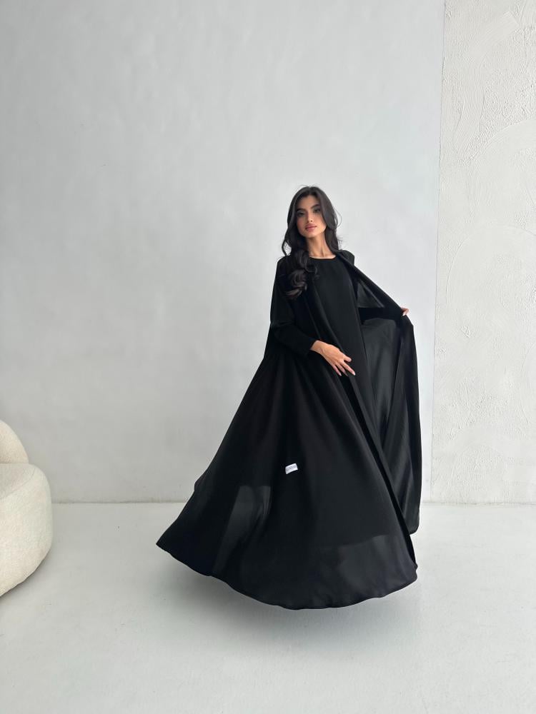 التفاصيل: عبايه بقماش كريب صيفي بارد ، قصة دبل كلوش، اللون اسود ، وفستان داخلي بنفس القماش يمكن اضافته عند الرغبه.