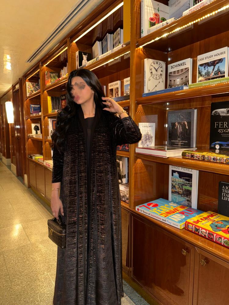 التفاصيـل: عباية بقماش مخمل اسود خفيف بلمعة قلتر
